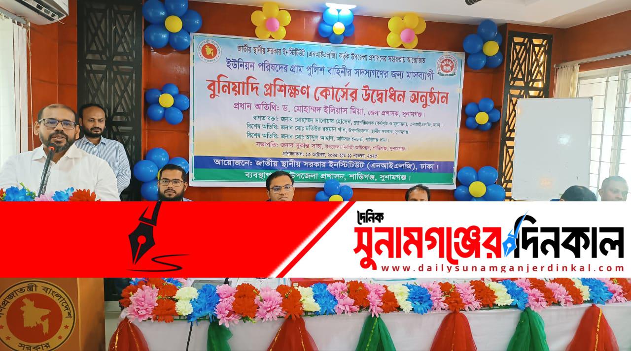 শান্তিগঞ্জে ইউনিয়ন পরিষদের গ্রাম পুলিশ বাহিনীর সদস্যগণের জন্য মাসব্যাপী বুনিয়াদি প্রশিক্ষণ কোর্সের উদ্বোধন করা হয়েছে। সোমবার (১৩ অক্টোবর) সকাল ৯ টায় জাতীয় স্থানীয় সরকার ইনস্টিটিউট (এনআইএলজি) কর্তৃক উপজেলা প্রশাসনের সহায়তায় উপজেলা পরিষদ হলরুমে উক্ত অনুষ্ঠানে রথপাড়া সরকারি প্রাথমিক বিদ্যালয়ের প্রধান শিক্ষক আশীষ চক্রবর্তীর পরিচালনায় ও শান্তিগঞ্জ উপজেলা নির্বাহী অফিসার সুকান্ত সাহার সভাপতিত্বে প্রধান অতিথি হিসেবে বক্তব্য রাখেন ও উপজেলার বিভিন্ন ইউনিয়নের ৪০ জন গ্রাম পুলিশের মাসব্যাপী প্রশিক্ষণ কোর্সের শুভ উদ্বোধন করেন সুনামগঞ্জ জেলার জেলা প্রশাসক ড. মোহাম্মদ ইলিয়াস মিয়া।