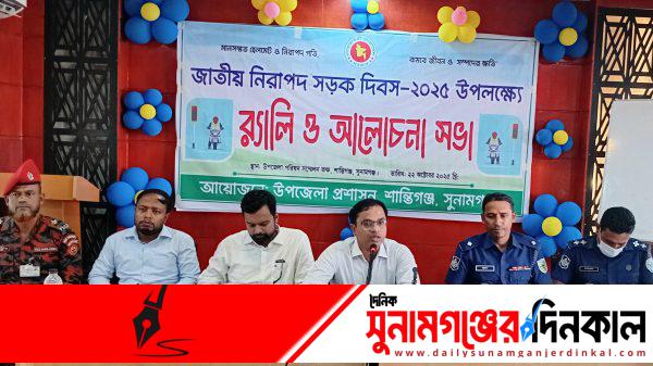 সুনামগঞ্জের শান্তিগঞ্জে জাতীয় নিরাপদ সড়ক দিবস-২০২৫ উপলক্ষে র্যালি ও আলোচনা সভা অনুষ্ঠিত হয়েছে।