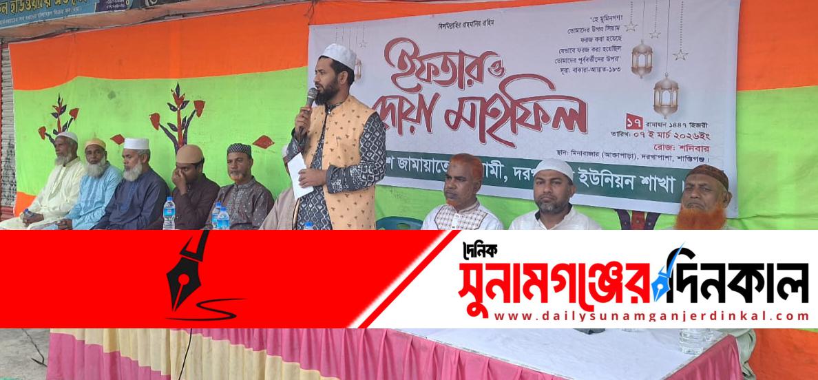 সুনামগঞ্জ জেলার শান্তিগঞ্জ উপজেলার আক্তাপাড়া মিনা বাজারে,বাংলাদেশ জামায়াতে ইসলামী দরগাপাশা ইউনিয়ন শাখার উদ্যোগে ইফতার ও দোয়া মাহফিল অনুষ্ঠিত হয়েছে।